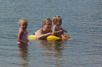 This year for our church's Family Camp we actually "roughed it" in a tent. When asked what her favorite part was, Naomi's reply was, "sleeping." Saturday also happened to be free fishing day for kids at the hatchery so Naomi, Steve, the Rowe Family and Steve Ballard went for an adventure. Each of the kids caught their limit (2) but the fish were "too wiggly" for Naomi's liking. We also went down to Lake Siskiyou beach each day with the Smiths and played and swam and played and swam. It was fun and exhausting!